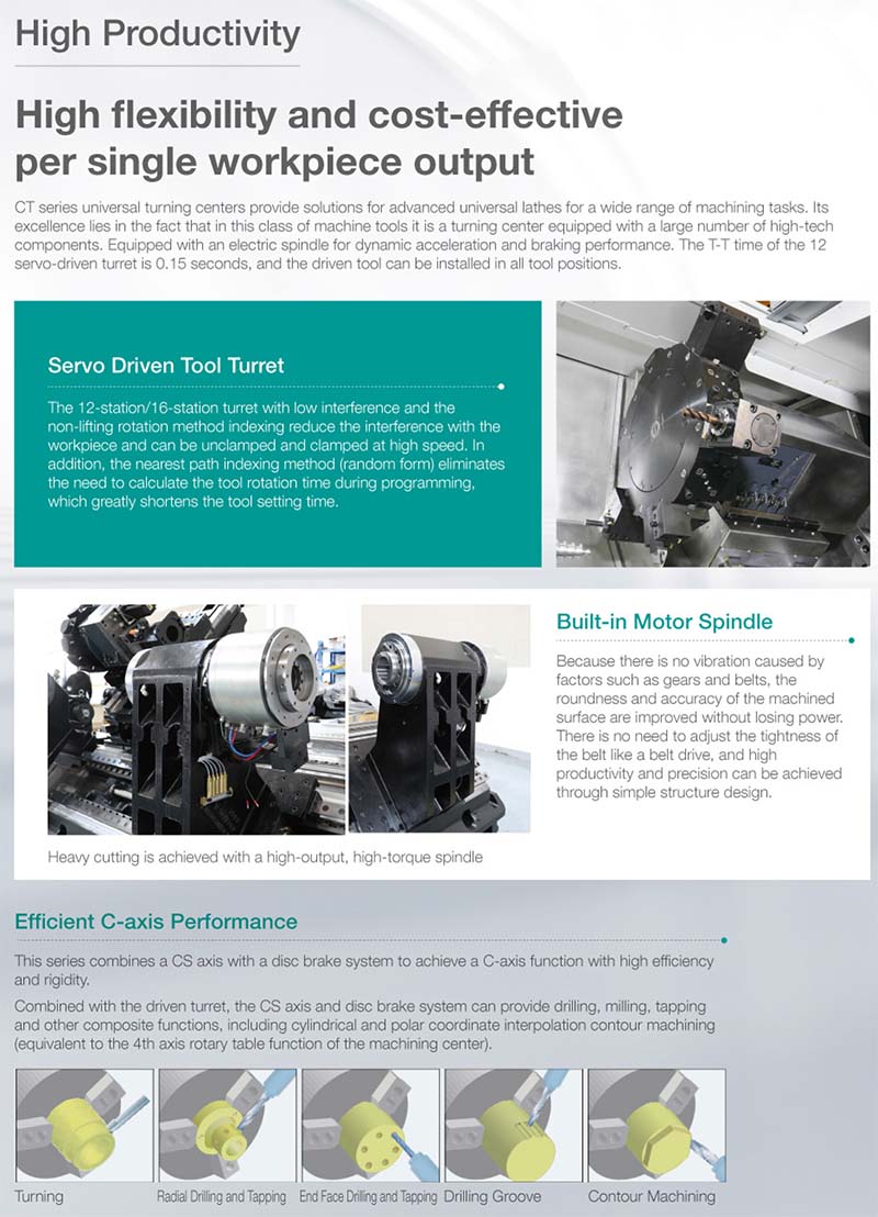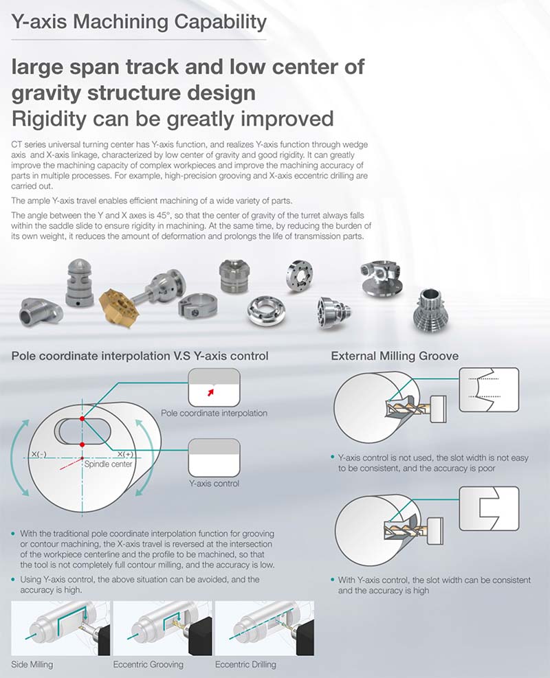 臥式數(shù)控車削中心。主要用于加工軸類零件的內(nèi)外因柱面、圓錐面、螺紋表面、成形回轉(zhuǎn)體面等,對于盤類零件可以進行鉆孔、擴孔、絞孔、笆孔等加工,另外,還可以完成車端面、切槽、倒角等加工;適用于加工復雜、高效率、一次裝夾加工成型的工況;