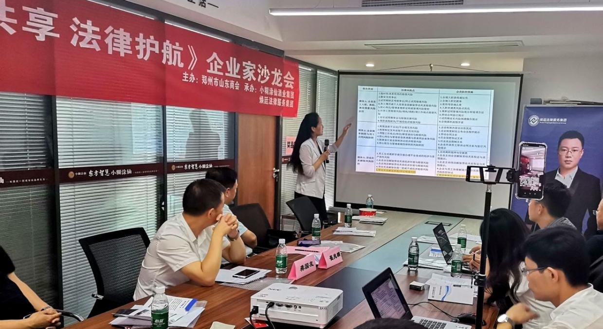 2022年6月25日下午,煥廷法律服務集團第三十四期《智慧共享 法律護航》企業(yè)家沙龍活動在小糊涂仙酒業(yè)集團河南辦事處如期舉行,活動以“企業(yè)勞動用工風險規(guī)避”為主題,由河南廣播電視臺《法治河南》欄目全程跟蹤報道,并通過“河南煥廷律師事務所”視頻號對外直播。