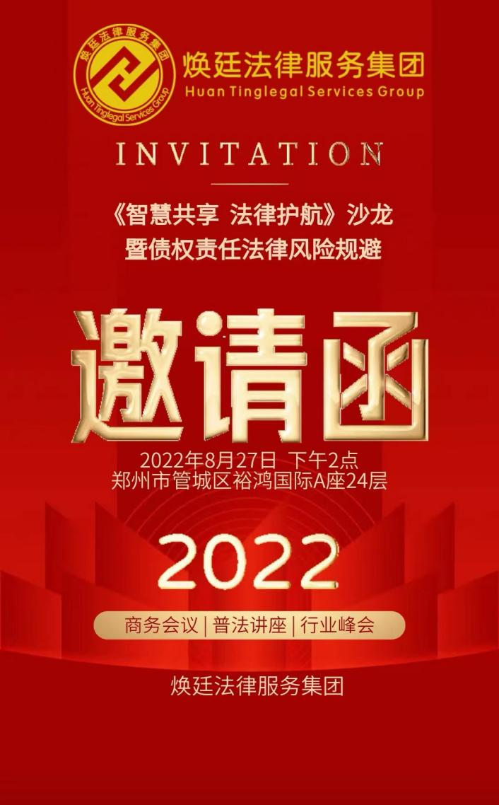 如何“防患于未然”,規(guī)避債權(quán)責(zé)任法律風(fēng)險(xiǎn)?歡迎參加煥廷律師事務(wù)所第三十六期《智慧共享 法律護(hù)航》企業(yè)家沙龍會(huì)。本次沙龍將于2022年8月27日下午如期舉行。